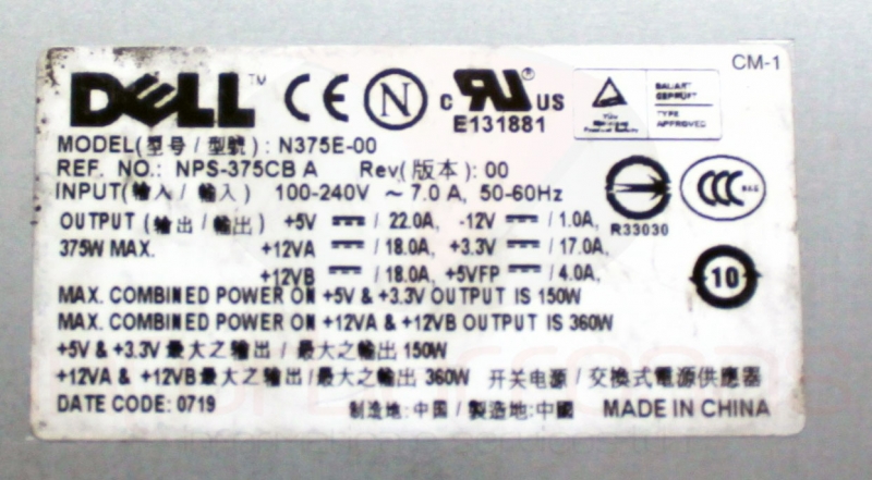 Fonte de Alimentação Dell 375W REFURBISHED